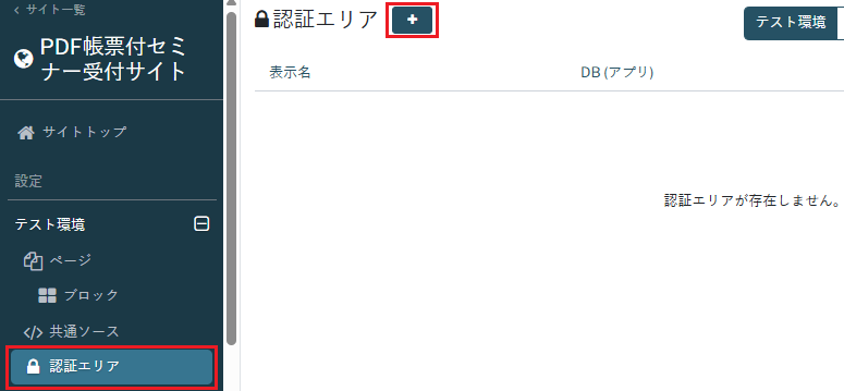 認証エリアの作成については、「認証エリア」をご確認ください。