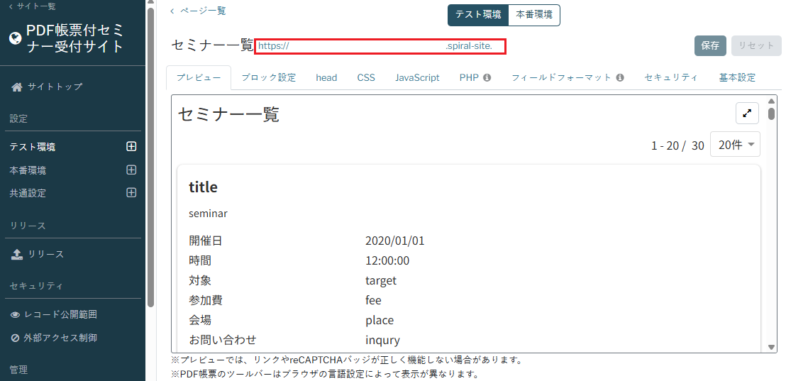 SPIRAL ver.2のサイト機能には、安全にページやフォームのコンテンツ修正を行うためのテスト環境をご用意しております。