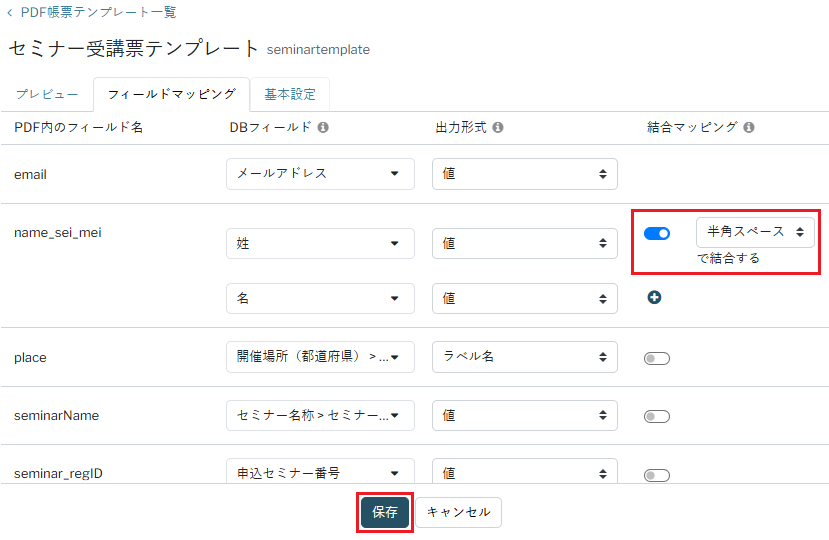3-2.フィールドマッピングでPDF内とDBフィールドを編集する