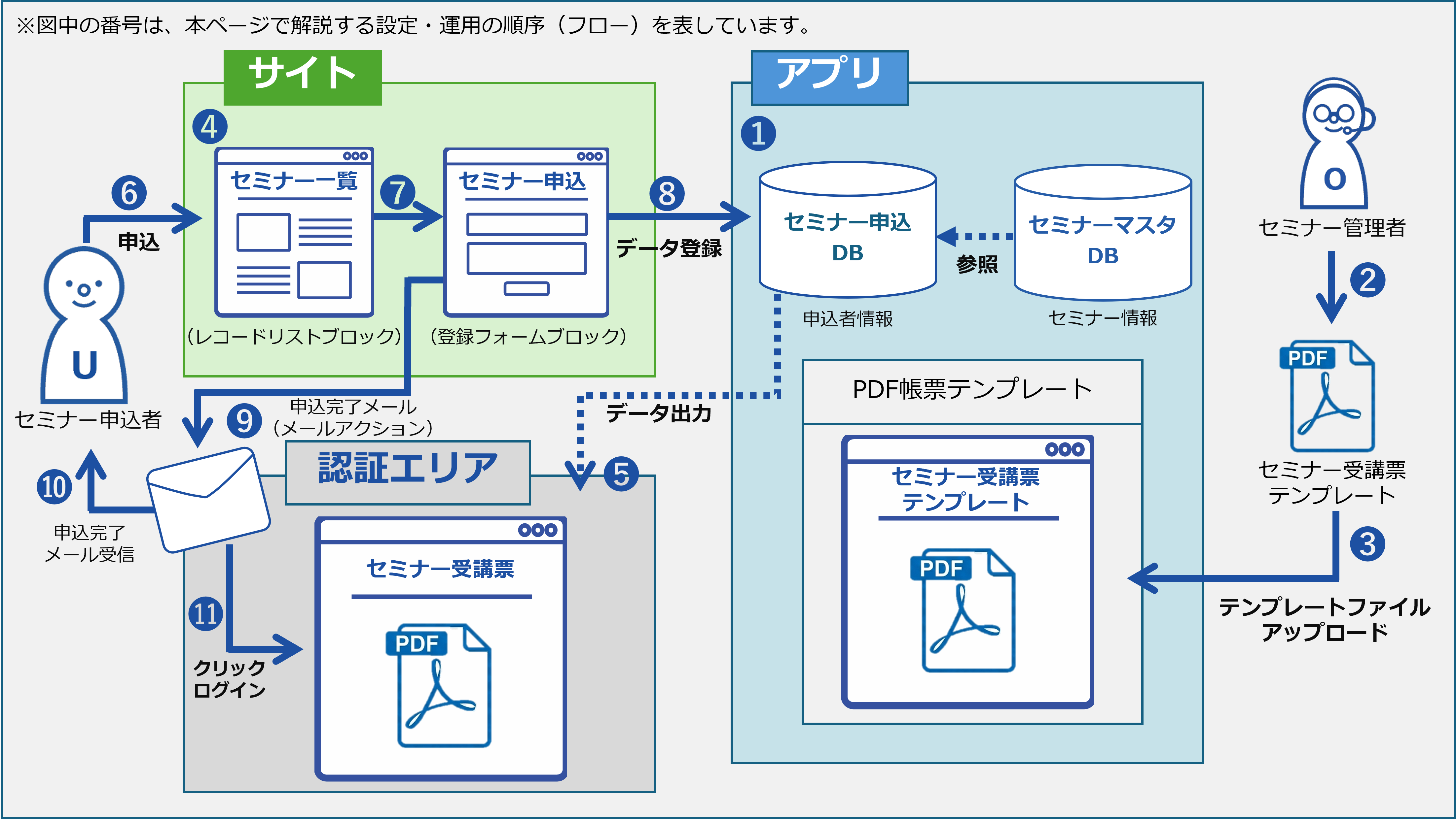 ここでは、セミナーの申込受付から、申込者専用の受講票(PDF)を発行するアプリを紹介します。