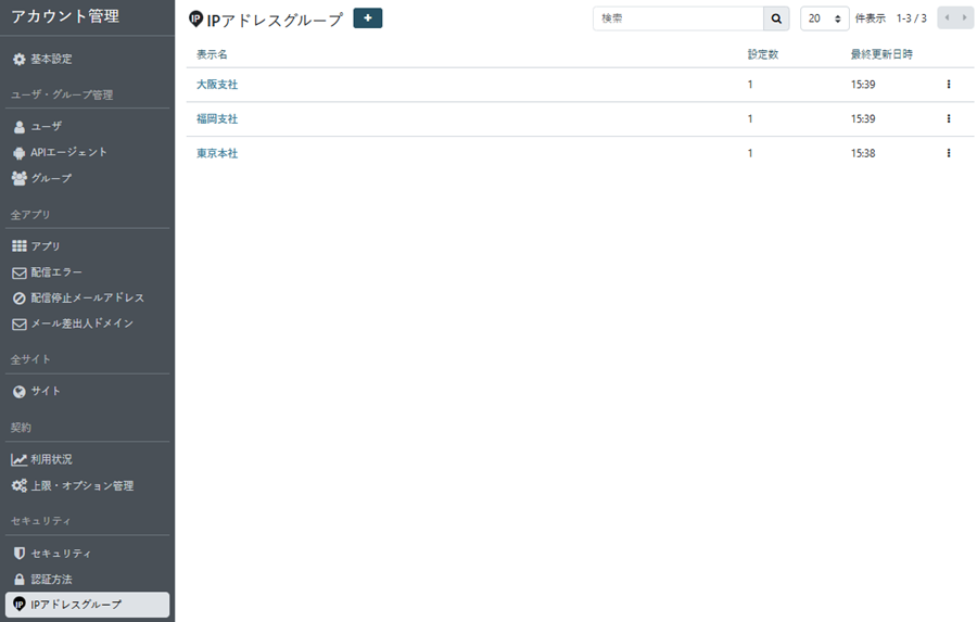 IPアドレスグループ一覧