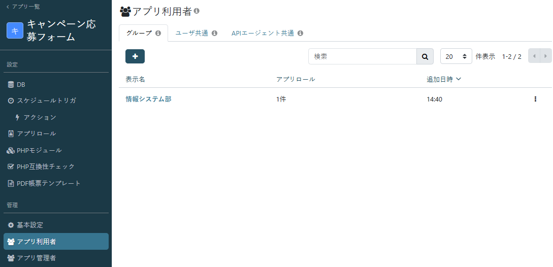 ・アプリ利用者:アプリに対してアプリ利用のグループを指定します。